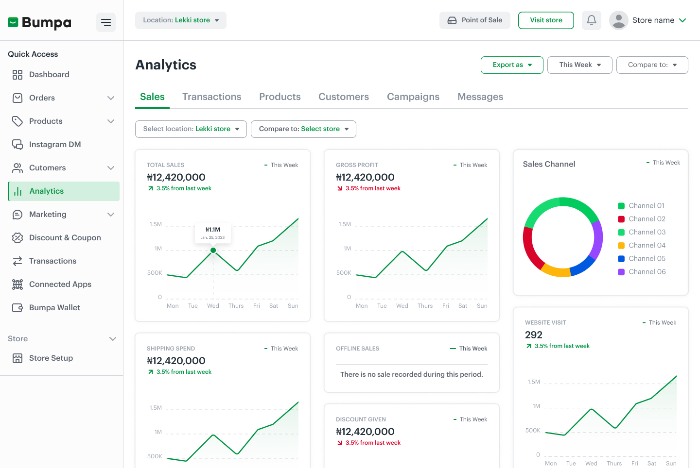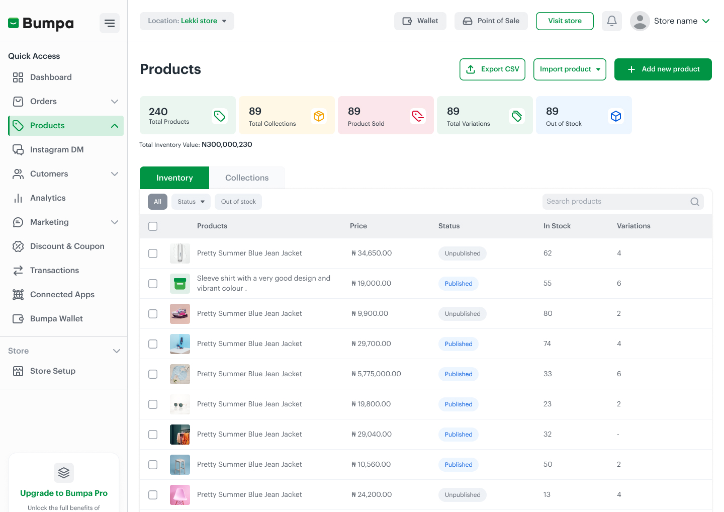 Your business will always run smoothly, from inventory and order management in all your stores to swift payments and easy customer checkout. It all comes together, with the Bumpa Growth Plan.