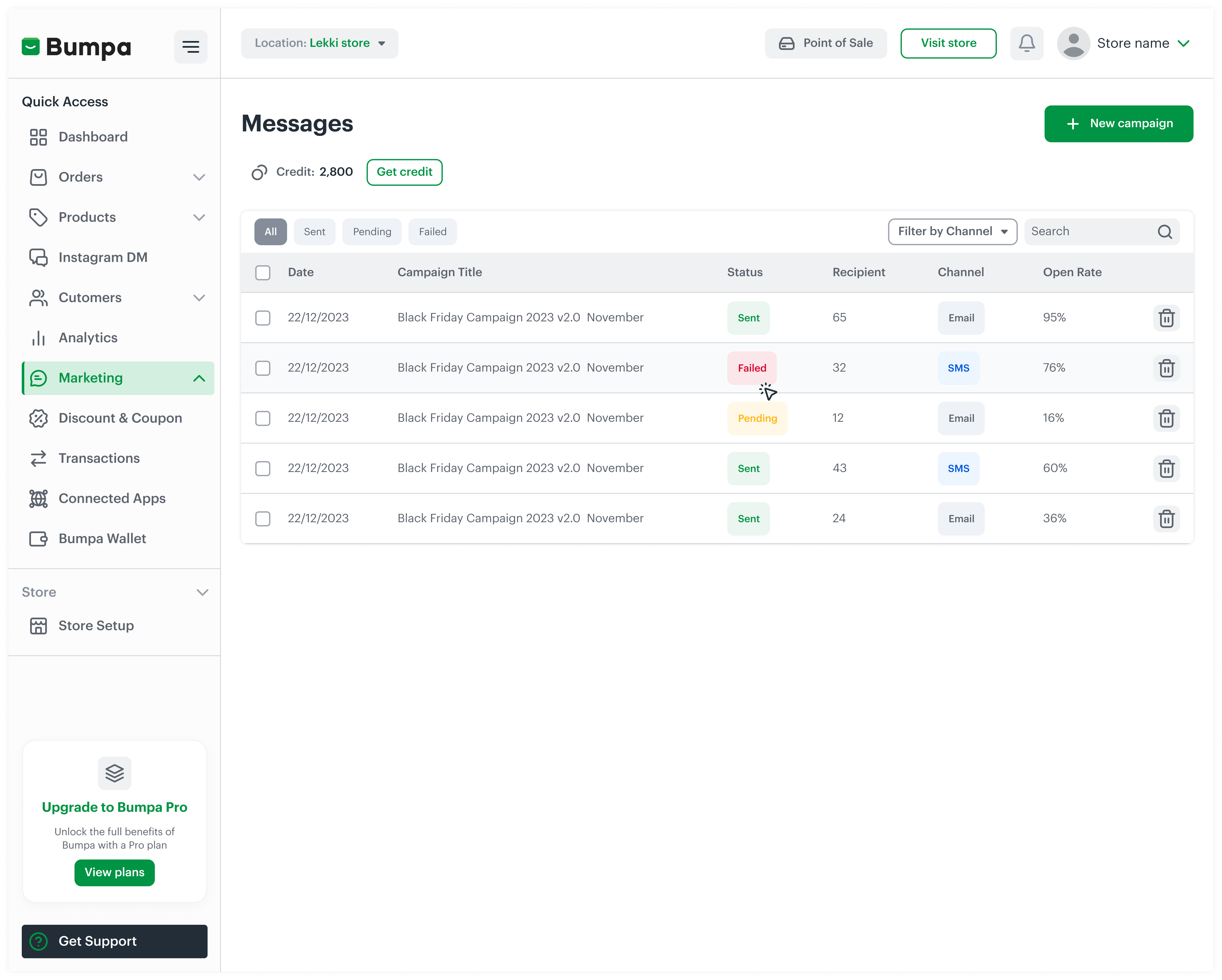Secure your customers’ information permanently, and nurture & retain them via email and SMS campaigns.