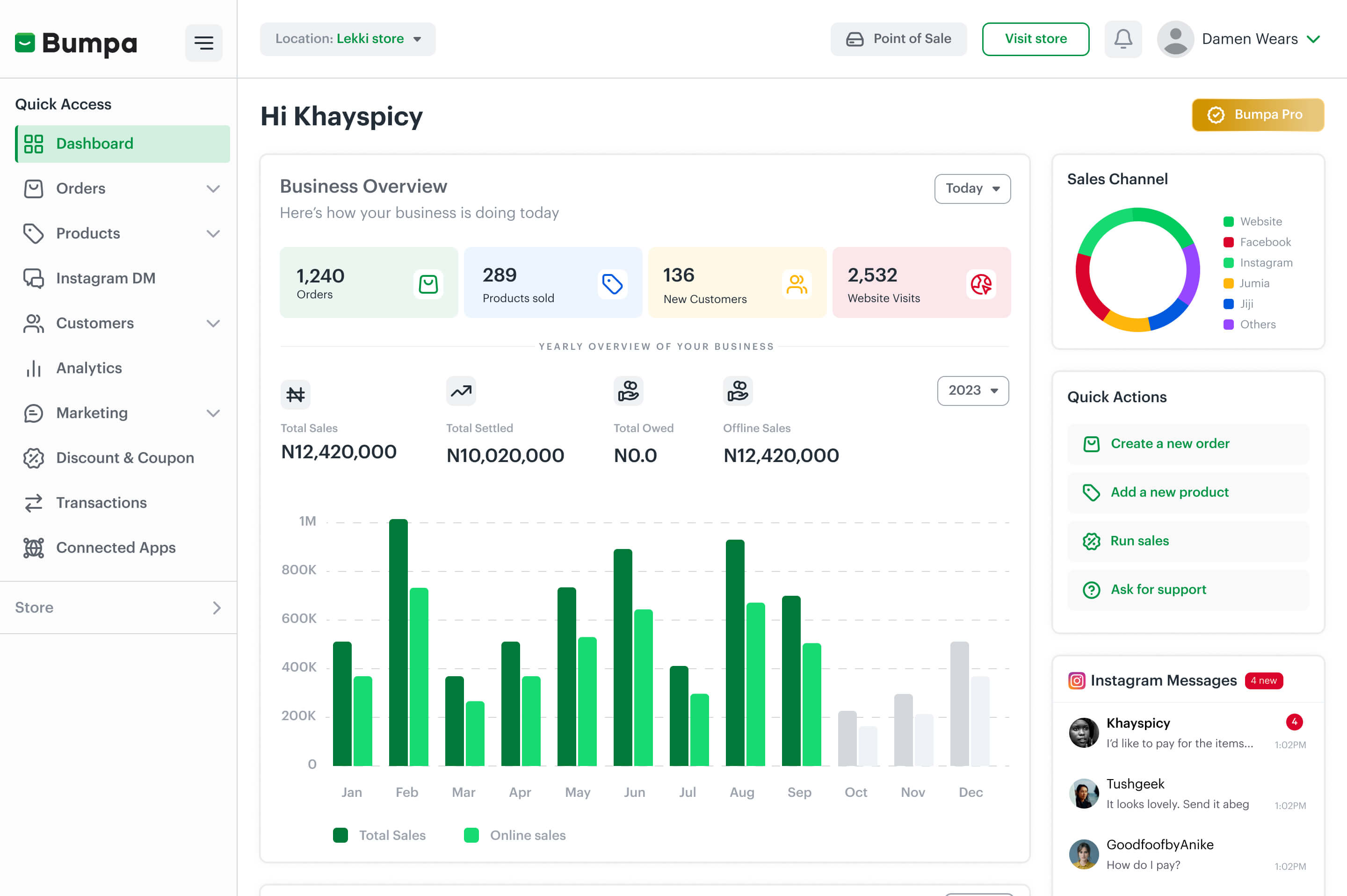 Track and manage your business operations seamlessly as you expand - the Bumpa Growth plan is designed to make it easy for you!